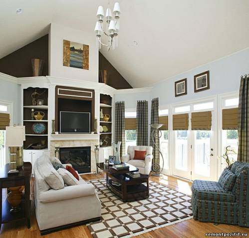 Ремонт позитивный - главная » Фото интерьеров и дизайна » Интерьер комнат » Интерьер гостиной » Дизайн гостиной с камином