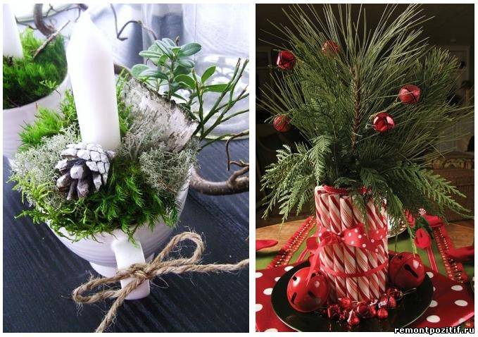 Что ж, если по тем или иным причинам вам не удалось приобрести ни живую, ни искусственную елочку, есть еще один вариант – оформление квартиры еловыми (сосновыми) ветками. Хвойные лапы деревьев можно приобрести всегда, а при творческом подходе, с их помощью можно оригинально украсить помещение к празднику. Для продления жизни таких природных композиций, обращаться с ними нужно как указано выше – как с живыми елочками