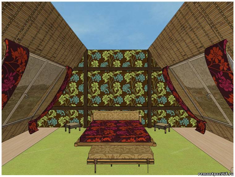 В нашем дизайн-проекте спальни мы создали мансарду в стиле