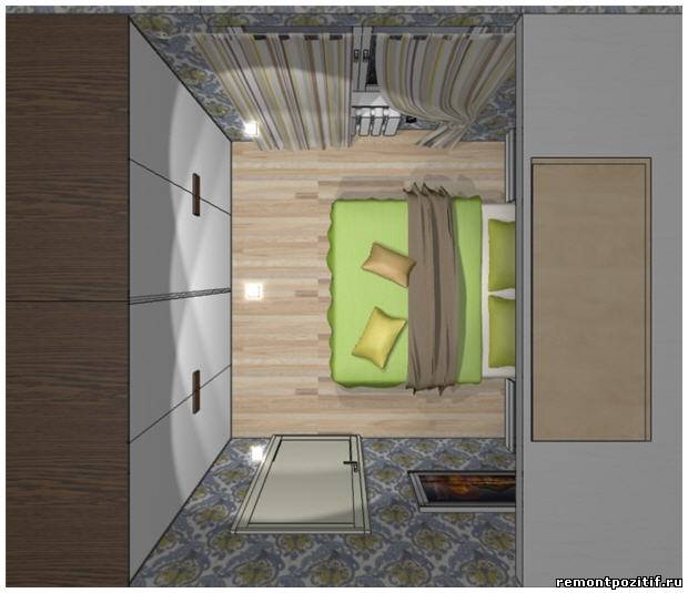 Дизайн небольшой спальни с мини - кабинетом в шкафу