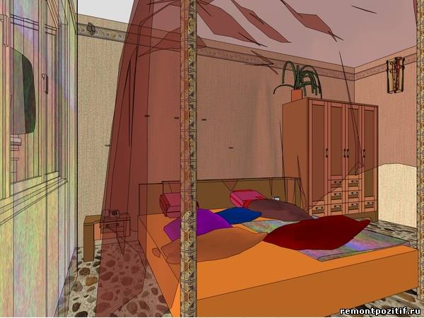 Дизайн - проект спальни с лоджией - кабинетом (восточный стиль)