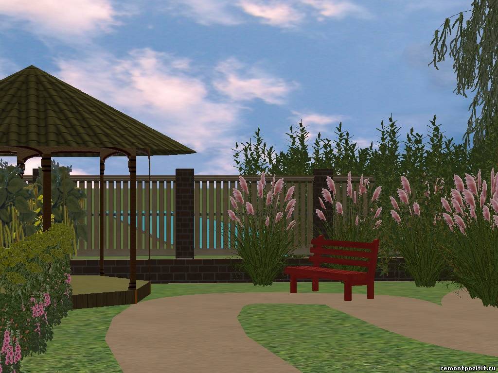 Прим. Картинки ландшафтного дизайна сада с огородом у реки можно увеличить.