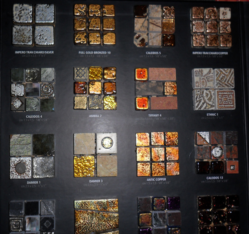 В-третьих, при помощи керамической плитки-мозаики можно создавать любые узоры и рисунки, выполненные в любом цвете и текстуре. Современные технологии позволяют создавать плитки с небольшими трещинками (кракелюрами), вкраплениями нескольких цветов или имитировать неровности, поэтому сегодня стало возможно создание мозаичных плиток с различными рельефными поверхностями, например, под дерево. Такой эффект не может быть достигнут при использовании стеклянной мозаики.