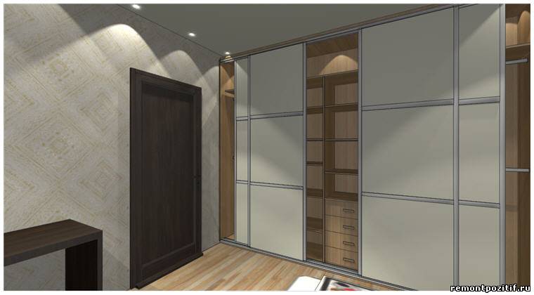 менее важен в спальной комнате типовой квартиры, имеет дверцы с зеркальными вставками, которые